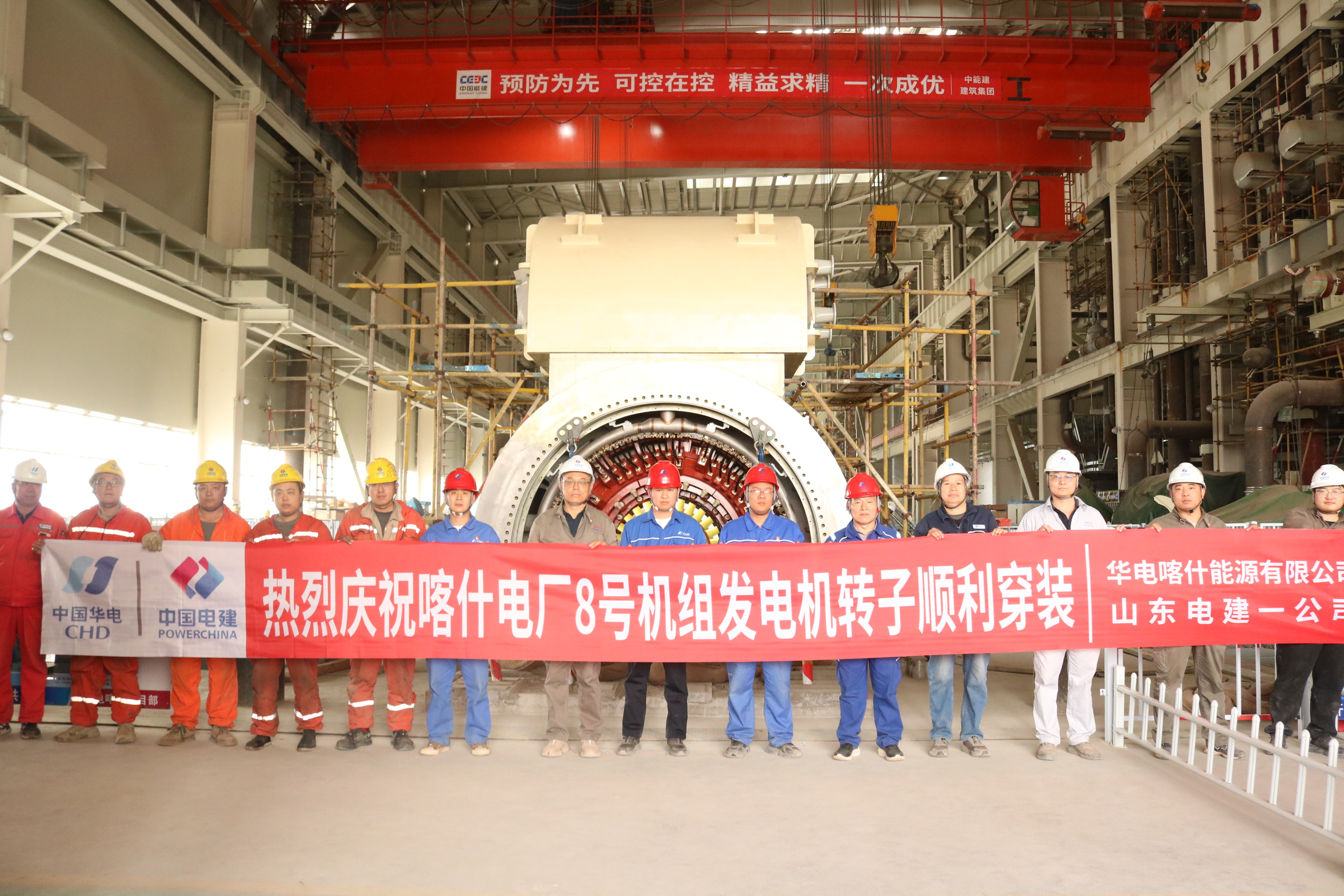 2026年3月31日15时,由山东电建一公司承建的华电喀什项目再传喜讯,作为主机安装核心关键工序的8号机组发电机转子穿装作业一次性圆满完成