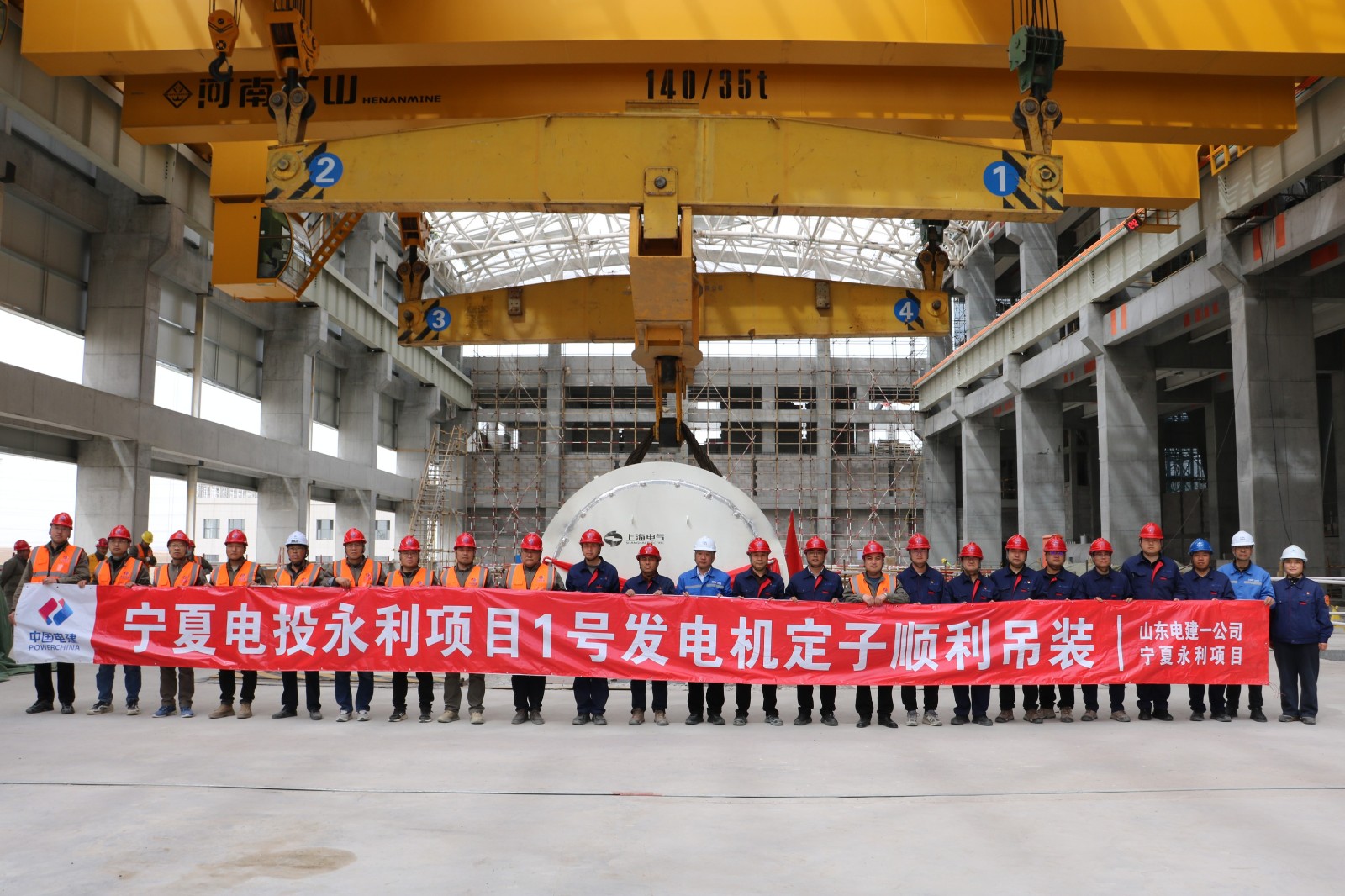 山东电建一公司宁夏电投永利项目1号机组发电机定子吊装圆满成功