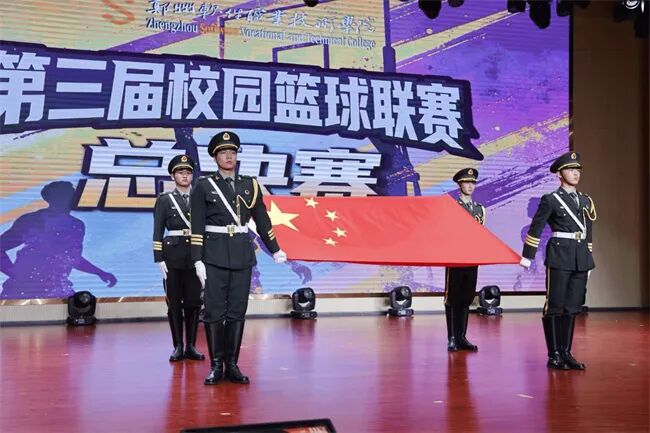 比赛开始前,国旗护卫队迈着铿锵有力的步伐护送国旗入场,全场师生肃立齐唱中华人民共和国国歌,庄严仪式彰显青年学子的爱国情怀与昂扬风貌。国歌奏毕,参赛队员有序热身,全力备战总决赛。